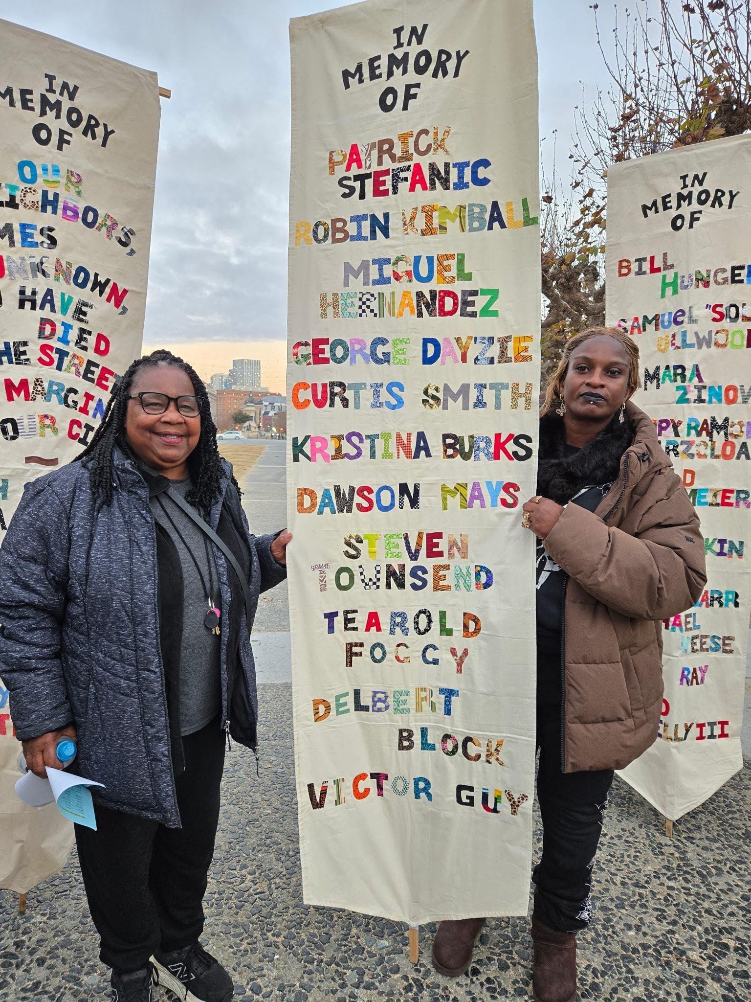 We are here to remember the lives of our neighbors. Our brothers and sisters. Those who died unhoused or unstably housed in the streets, shelters, stairwells, and sidewalks of this city.